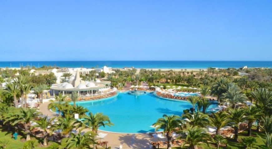 Разположение : Както подсказва името, това място е заобиколено от красиви градини.Хотелът се намира на 25 км от летище Djerba, Град Мидун е на 6 километра, на 18 км до Home Souk и на 6 км. до търговската зона.Разположен е на първа линия на красивия плаж с бял пясък Сиди Марез. Хотелът е с голяма територия /20 000 m² градина/, с много зеленина и перфектна храна и обслужване. Хотелът се състои от 3 сгради и е декориран в ориенталски стил.