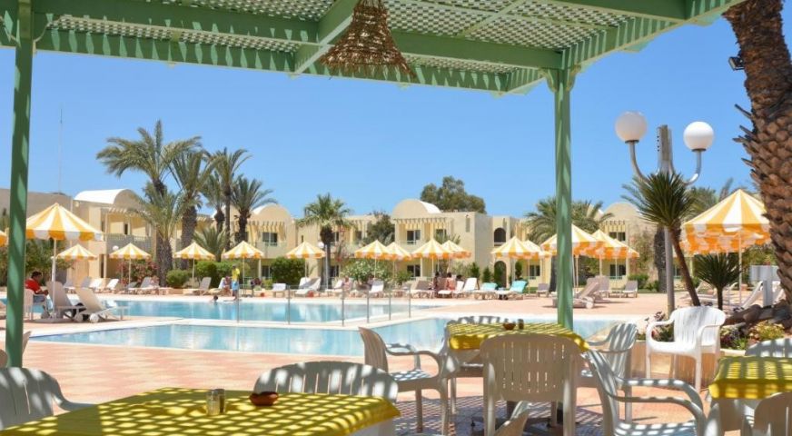 Разположение: Хотелът е идеално разположен в туристическата зона на Мидун, на 24 км от летище Zarzis, на 9 км от центъра на Мидун, на 18 км от Хумт Сук и на 3 км от Голф клуб Джерба. Последно реновиран през 2013 година, разположен на втора линия.