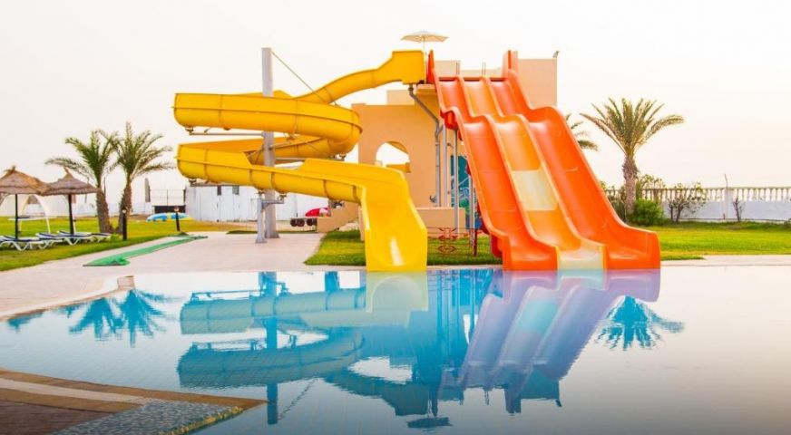 За децата: детски басейн с мини пързалки, втори детски басейн, детска площадка, мини клуб (4 -12 год.) детски столчета в ресторантите, бебшки кошари (по заявка, според наличност).