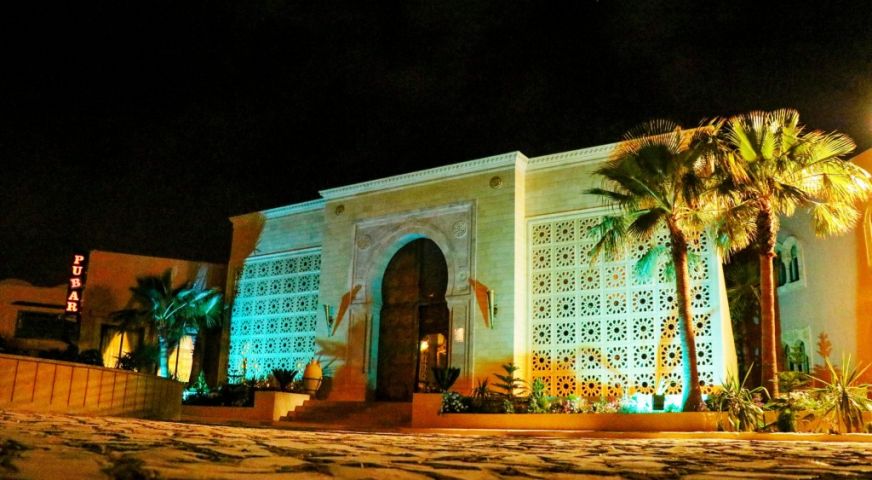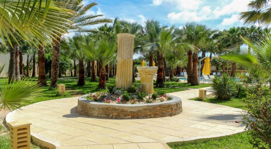 Разположение:  Хотела е разположен на източното крайбрежие на остров Джерба, ситуиран в палмова горичка съчетаващ екзотика, чар и спокойствие. Намира се на 3 км от град Мидун, на 14 км от гр. Хумт-Сук и на 20 км от международното летище Джерба-Зарзис. В близост: голф, боулинг, казино.