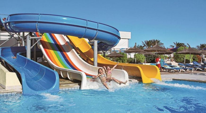 All Inclusive изхранване, няколко басейна, водни пързалки, детска зона, амфитеатър, анимационни програми и СПА услуги. Подходящ е както за семейства с деца, така и за двойки.