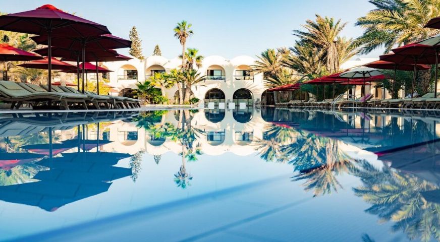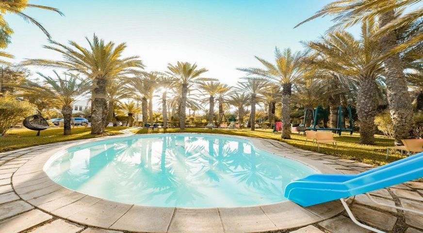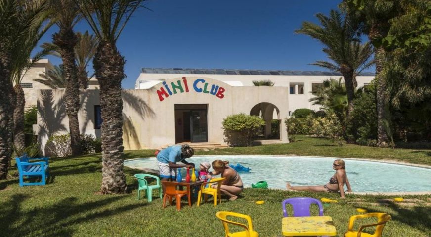 Намира се на 24 км от летище Джерба, на 5 км от центъра на Мидун, на 2 км от голф игрището, на брега на морето. Хотелът е построен през 1968 год., последна реновация - през 2014 год.