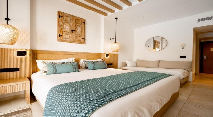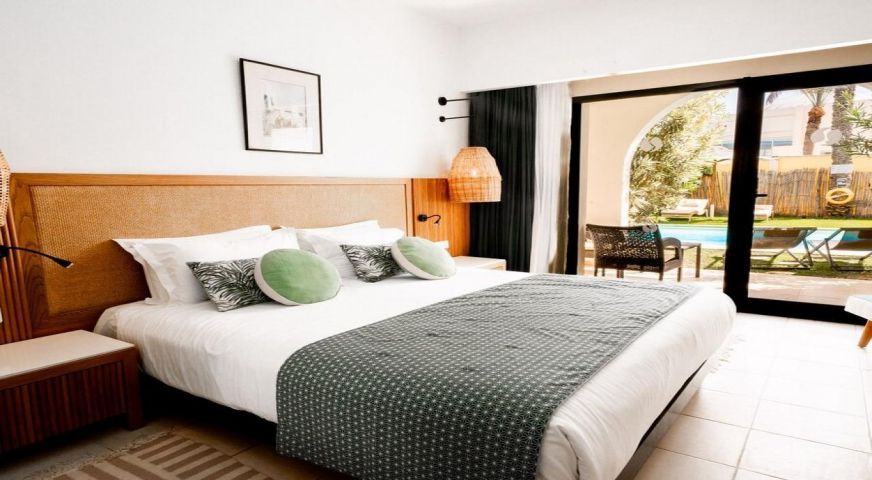 Хотелът разполага с общо 248 стаи, разположени в 2-етажна основна сграда и 2-етажна допълнителна сграда -Standard Room (19 кв.м), Standard Room Sea Side/Pool View (19 кв.), Annex Room (24 кв.м), Family Room (33 кв.м), Swim Up Room (с директен достъп до басейна).