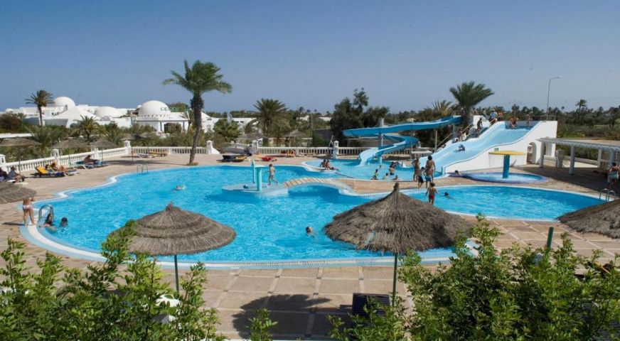 Намира се е на 25 км от летище Зарзис, на 5 км от Мидун, на 16 км от Хумт Сук, в близост до голф игрището на Джерба, на 200 метра от брега на морето, с директен достъп до най-добрия частен пясъчен плаж на острова, през зелените пясъчни дюни и палмите. Построен 1993 г, на обща площ от 120 000 м2. Реновиран 2018 г.