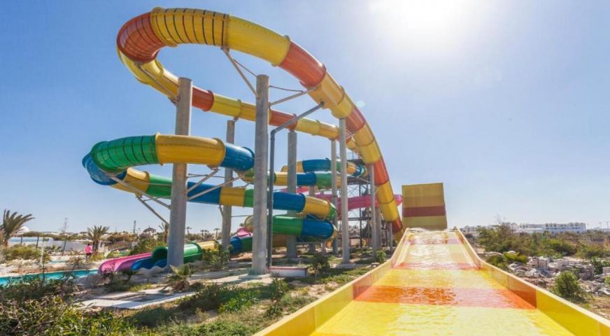 Водният парк от 4 хектара включва много атракции: басейн с вълни, мързелива река, пързалка Space Hole, комплекс Multi Slide - тунел, пързалка с камикадзе, рафтинг, черна дупка, Turbo Lance, тематични аква зони - Пиратски кораб и Делфин, водни гъби и пързалка Змия.