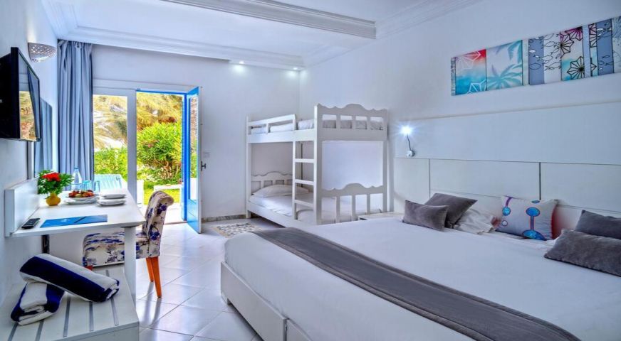 Хотелът разполага с общо 212 стаи в двуетажната сграда и 9 двуетажни бунгала на площ от 60 000 кв.м., без асаньор - Standard Room (22-26 кв.м.), Sea Side Room (22-26 кв.м. които са в по-голяма близост до морето), Family Room (24-28 кв.м), Family Superior (36-38 кв.м. с 2 спални, разположени в бунгала).