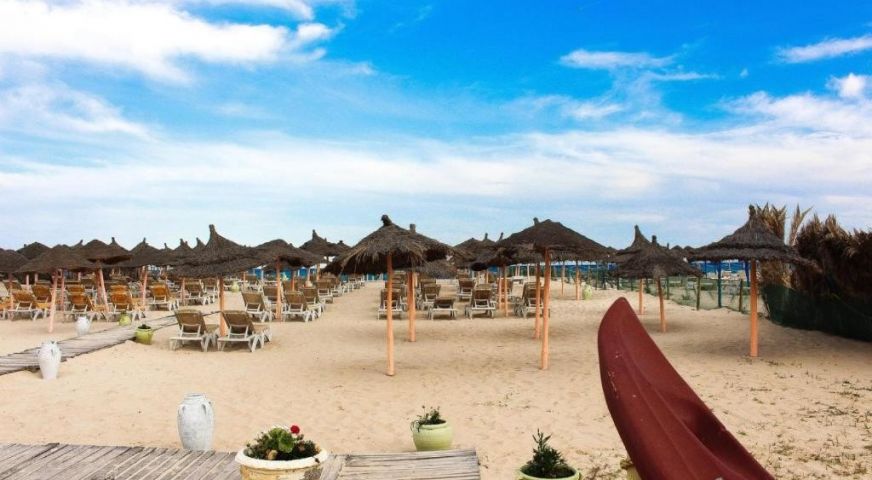 Плаж: собствен пясъчен плаж, на територията на обществения плаж на 30 м от хотела, 1-ва линия. Чадъри - безплатно, шезлонги - срещу заплащане, матраци, хавлии - не. Дължината на плажа е 200м.