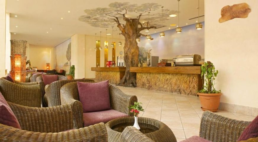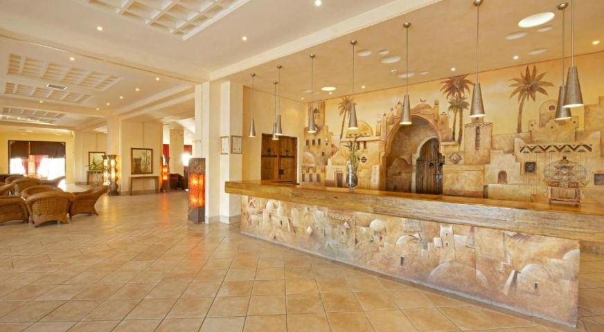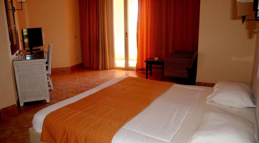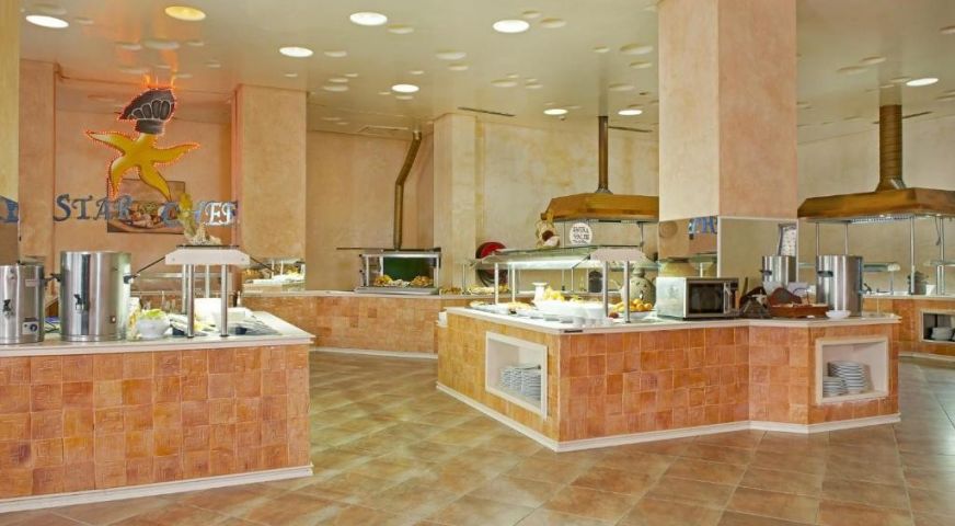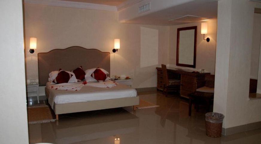На територията: Ресторант, бар и снак бар до басейна. открит басейн с водни парзалки и аква парк забавления за децата. Голям открит басейн и закрит отоплен. Плажа е на първа линия. Анимации за деца и възрастни (жива музика, тематични вечерии и други) и детски клуб с аниматури. Спа и уелнес център, сауна, фитнес център.Салон закрасота. Дартс и други спортни забавления като водни спортове(срещу доплащане). Стаите  разполагат с тоалетни принадлежности, телевизия, тераса, климатик, сешоар и интернет.