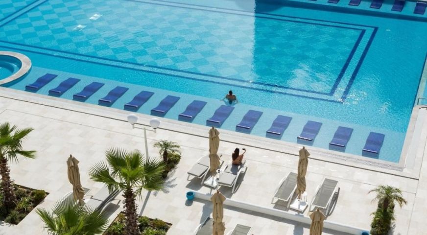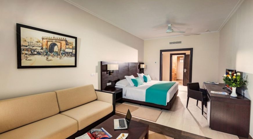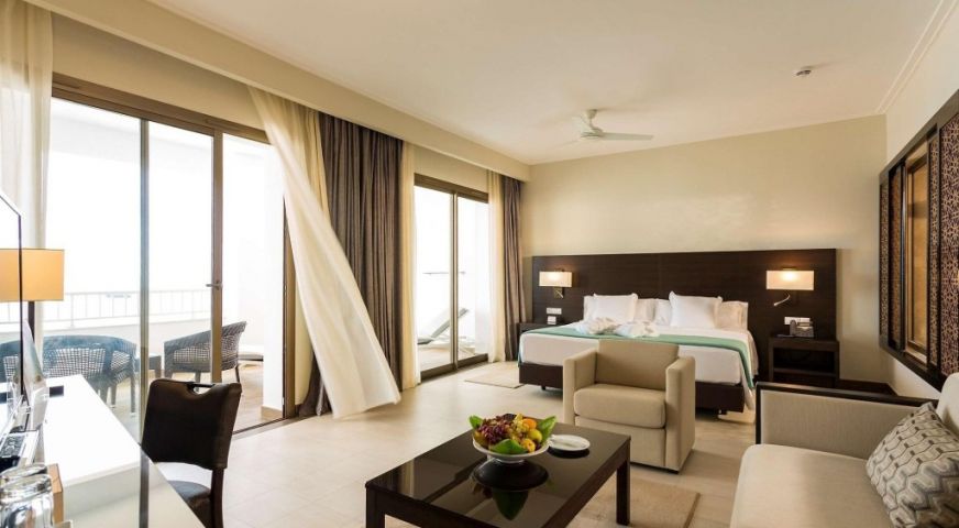 В стаите: Хотелът разполага с общо 452 стаи и апартаменти, разположени в основна сграда - Standard Room Garden View (46 кв.м), Sea View Room (41 кв.м), Family Room (65-75 кв.м, спалня и отделна всекидневна с разтегателен диван), Suite Junior Sea View (65-75 кв.м, кът за сядане с разтегателен диван), Premium Suite Sea View (60-65 кв.м, отделна всекидневна).