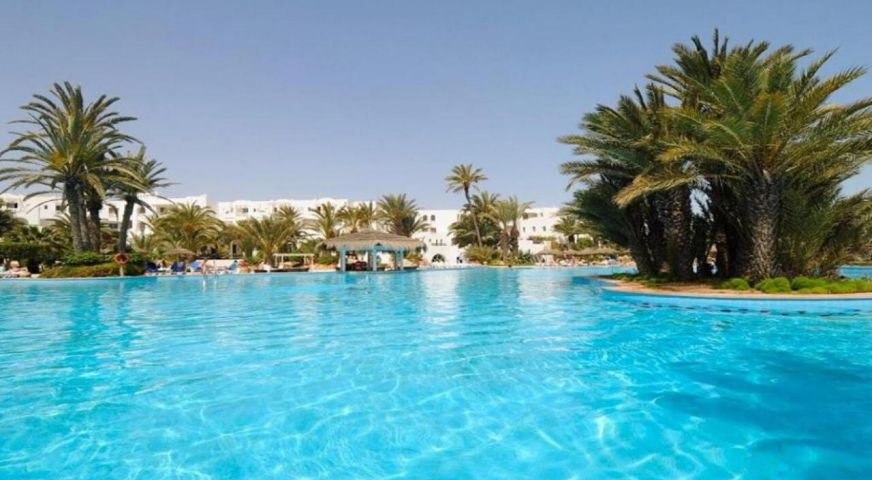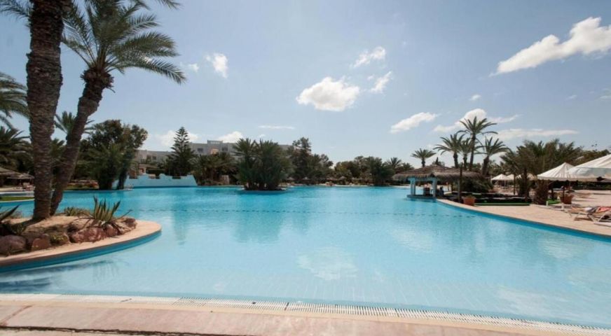 Djerba Resort е разположен в туристическата зона на остров Джерба – Midoun, на около 400 метра от плажа и 20 км от международното летище. Хотелът се намира сред зелени площи и градини, в близост до магазини и ресторанти, и предлага лесен достъп до град Houmt Souk (13 км). Районът е спокоен и подходящ за семейства и почивка.