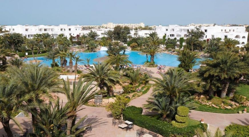 Djerba Resort е разположен в туристическата зона на остров Джерба – Midoun, на около 400 метра от плажа и 20 км от международното летище. Хотелът се намира сред зелени площи и градини, в близост до магазини и ресторанти, и предлага лесен достъп до град Houmt Souk (13 км). Районът е спокоен и подходящ за семейства и почивка.