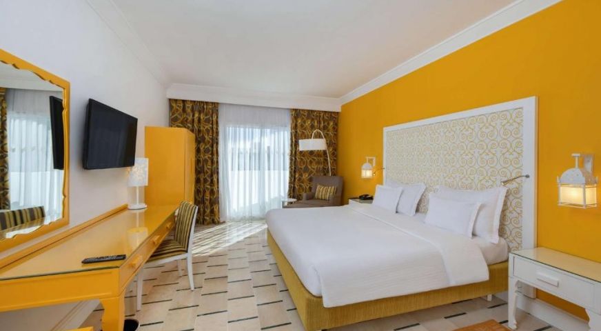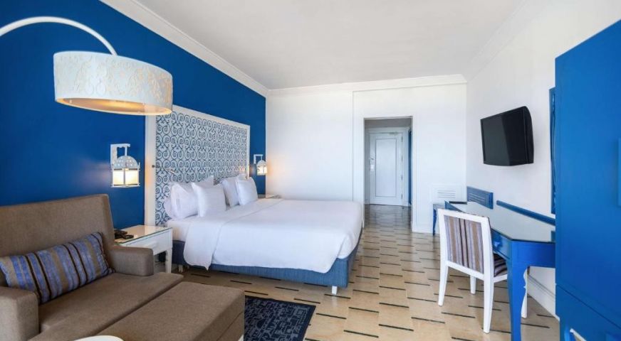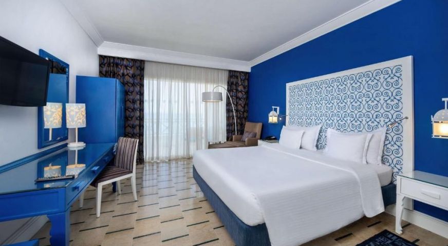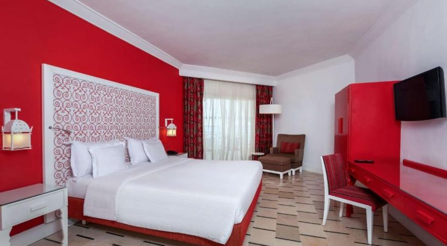 В стаите: Хотелът разполага с общо 274 стаи и апартаменти в изискана близкоизточна естетика със смели цветове и допълващи се шарки. Големите стаи в курортен стил разполагат с двойно легло king size или две единични легла, разполагат с удобства като минибар, сателитна телевизия и безплатен високоскоростен безжичен интернет, сет за приготвяне на кафе и чай, баня с душ, сешоар, ютия и дъска за гладене.