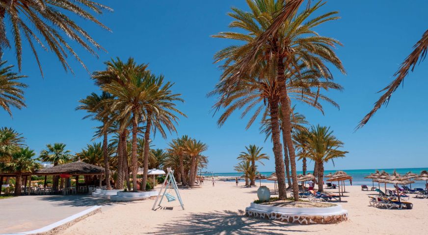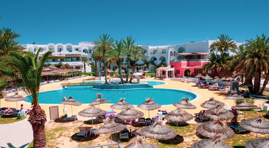 Намира се на 32 км от летище Зарзис, на 28 км от Хумт Сук, на 11 км от Мидун, на 11 км от голф игрището, на брега на морето. Построен е през 1996 година и последно е мащабно реновиран през 2011 година.