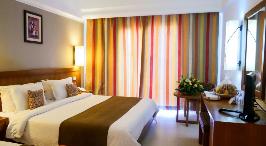 Хотелът разполага с 270 стаи, разположени в основна триетажна сграда с асансьор - Standard Room (26 кв.м.) и Sea View Room (26 кв.м).