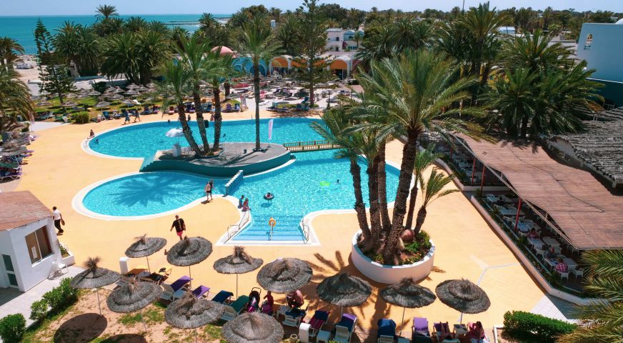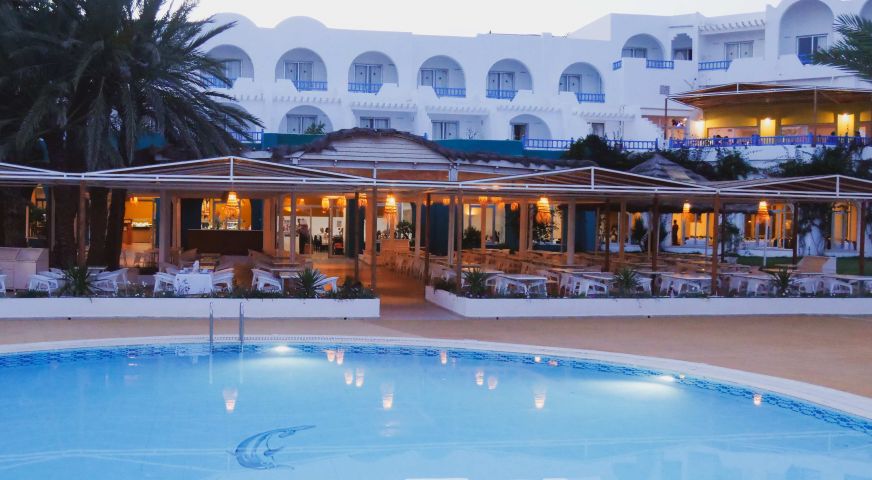 Основен ресторант L’Oliveraie, а ла карт ресторант La Felouque с тунизийска и ориенталска кухня (платен, едно безплатно посещение на престой при предварителна резервация), лоби бар El Castil, плажен бар Le Havana (от 15.06 до 15.10), бар басейн El Ghorfa, мавританско кафене La Kasbah (срещу заплащане), открит басейн, закрит басейн, денонощна рецепция, СПA център, конферентна зала, магазин за сувенири, обмяна на валута, банкомат.