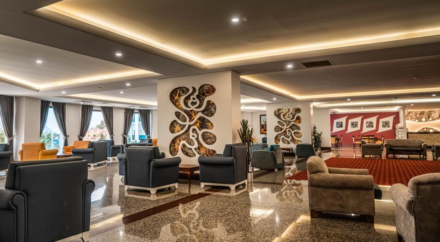 Основен ресторант, а-ла-карт ресторант (интернационална кухня - платен), 6 бара, 3 открити басейна ( 1100 м² и 650 м² )и 1 закрит басейн, аквапарк, магазини, СПА център. За децата: водни пързалки, 2 детски басейна, детска площадка, мини футбол, мини диско, мини клуб,(4-12г.) Безплатни услуги: сауна, турска баня, парна баня, фитнес, аеробика, баскетбол, волейбол, водна гимнастика, тенис на корт, тенис на маса, анимация, WI-FI интернет в лоби. Платени услуги: масаж, център за разкрасяване, пералня, химическо чистене, лекар, джакузи, оборудване за тенис корт, билярд, интернет кафе. Плаж: Собствен плаж в Ичмелер, на 3.5 км. от хотела. Безпатен шатъл до плажа в Ичмелер. Чадъри и шезлонги на басейна – безплатни и на плажа – безплатни. Не се предоставят плажни кърпи.