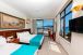 Хотелът разполага с общо 108 стаи, разположени в основна сграда – Standard Room, Standard Room Side Sea View, Triple Room, Family Room (спалня и всекидневна). Всички стаи са оборудвани с климатик, телевизор, телефон, баня с душ, сешоар, минибар, сейф (платен), балкон. Почистване на стаите – всеки ден.
