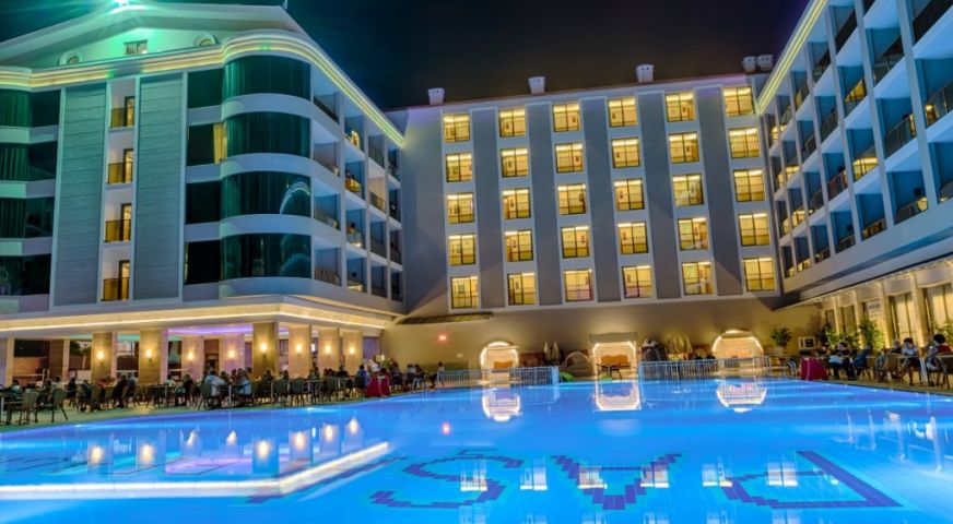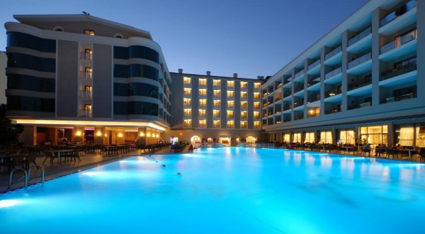 Основен ресторант, 4 бара, дискотека, 2 открити и 1 закрит басейн, водни пързалки, магазини, СПА център, паркинг. За децата: 2 детски басейна, водни пързалки, детска площадка. Безплатни услуги: Сауна, турска баня, фитнес, аеробика, тенис на маса, анимация, WI-FI интернет в лоби. Платени услуги: СПА център, масаж, пилинг, фризьор, детегледачка, магазини, пералня, химическо чистене, лекар, интернет кафе, билярд, моторни водни спортове. ПЛАЖ: Собствен, пясъчен – чадъри и шезлонги на плажа и при басейна – безплатно, плажни кърпи - безплатно.