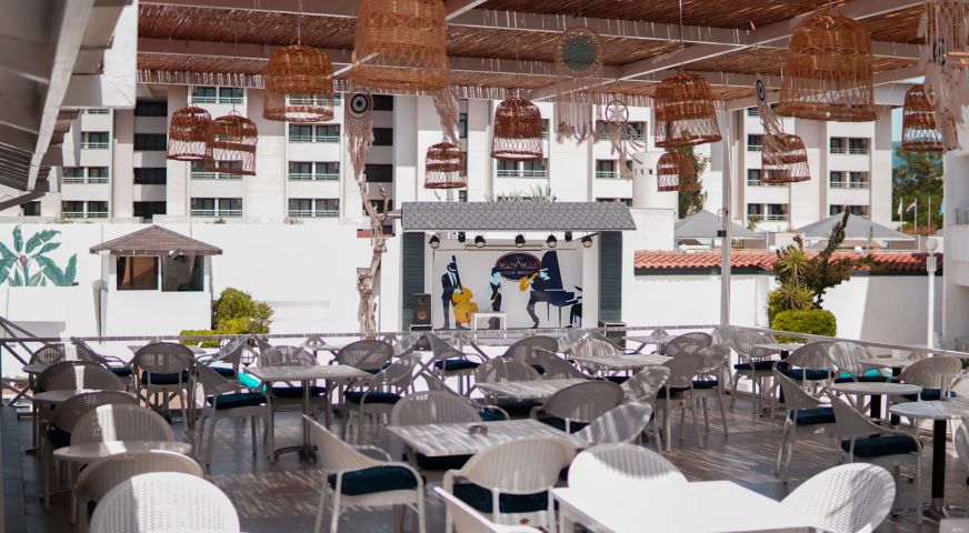 Основен ресторант, 2 бара, 4  басейнa (релакс басейн, детски басейн, за възтастни и басейна с водна пързалка), детски клуб, детска площадка, магазини, паркинг.