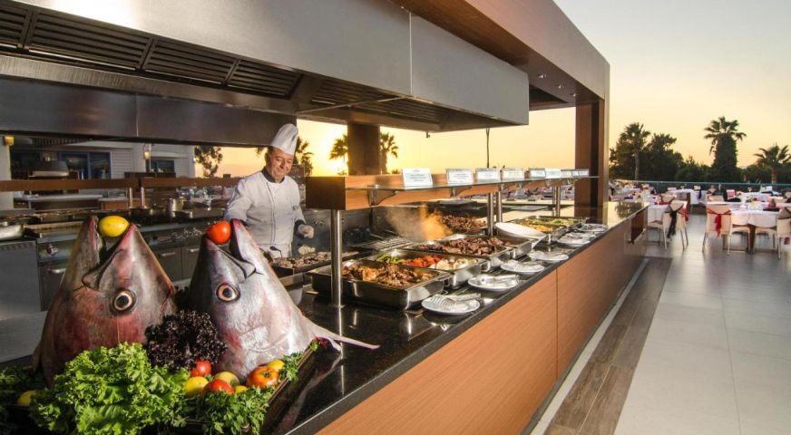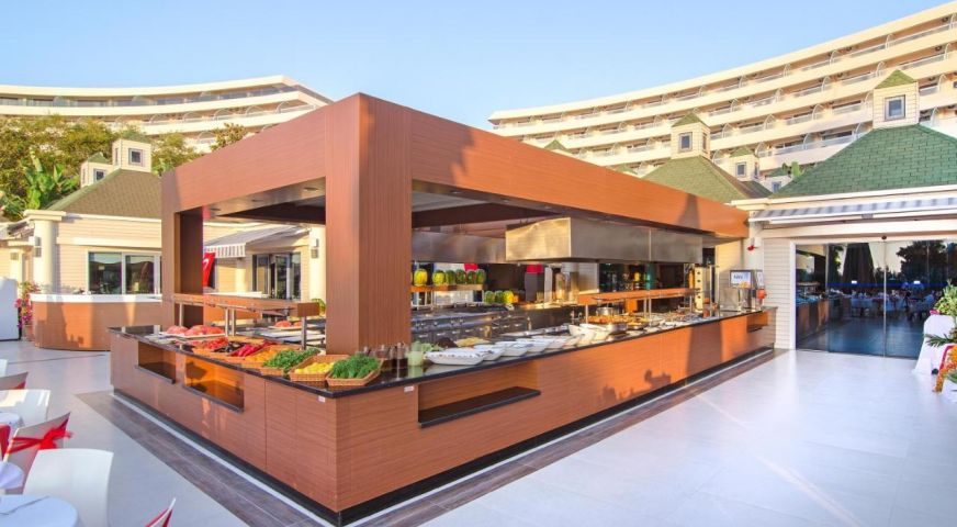 Основен ресторант, 3 а-ла-карт ресторанта (рибен, отомански и италиански - с предварителна резервация, едно безплатно посещение на един от тях), 7 бара, сладкарница, 2 открити басейна, магазини, СПА център, дискотека.