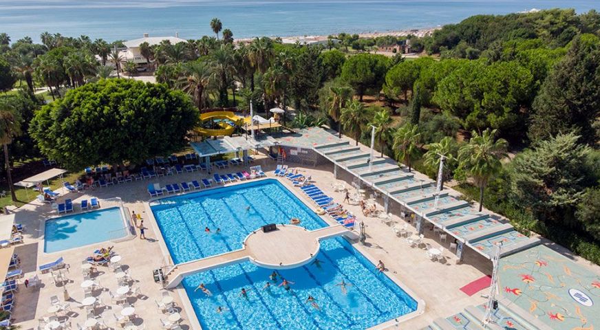 Хотелът е разположен на брега на морето, на 9 км. западно от античната част на Сиде, на 55 км. от летището на Анталия и на 2 км. от градчето Чолаклъ.