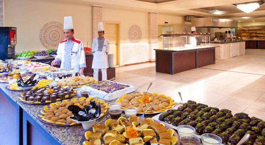 Хотелът функционира на база All Inclusive, включваща закуска, обяд и вечеря на блок маса, допълнителни закуски и неограничена консумация на местни алкохолни и безалкохолни напитки.