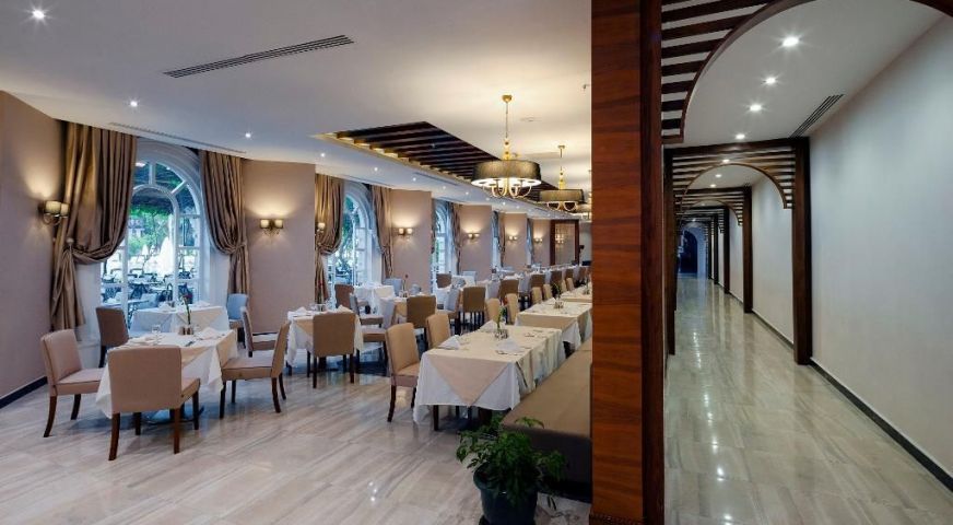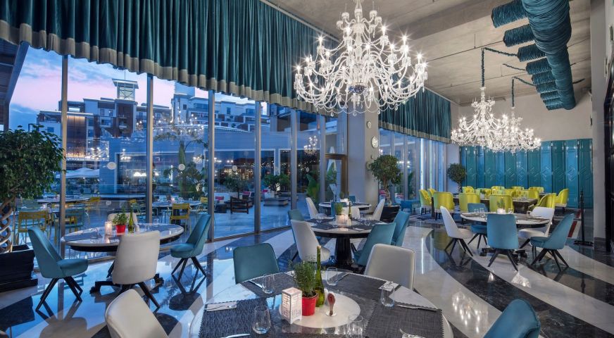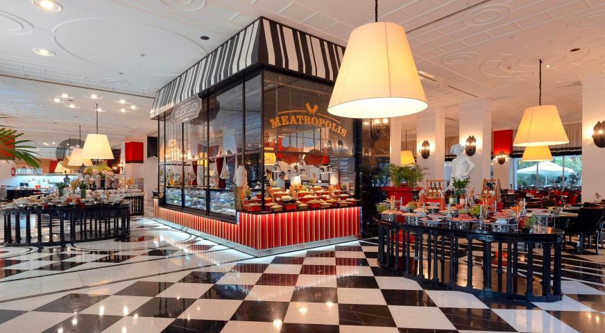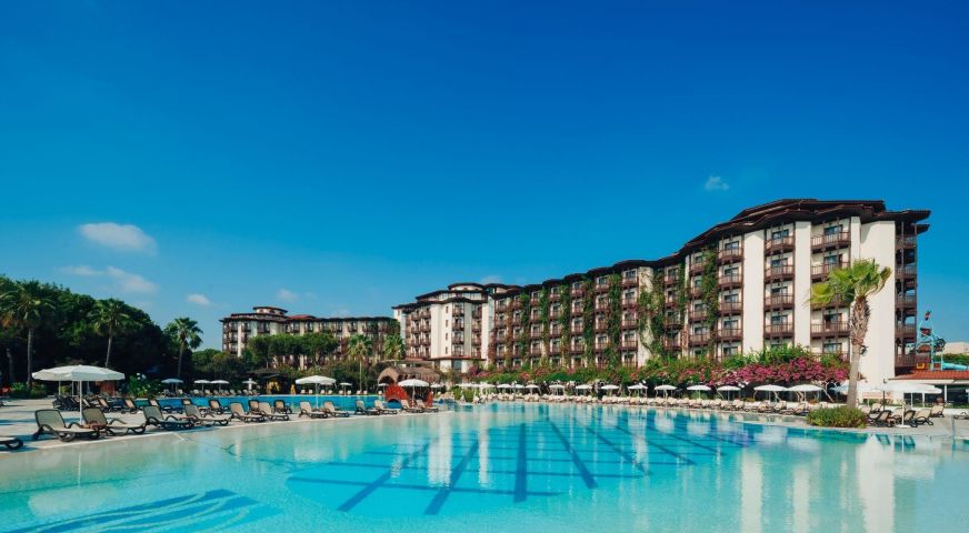 Основен ресторант, 5 а-ла-карт ресторанта (турски, италиански, рибен /за вечеря, 1 посещение за 7 дни безплатно в един от трите/, снек и бургер /за обяд/, 10 бара, 4 открити басейна, включително един с полуолимпийски размери, закрит басейн (отопляем за зимния период), Аквапарк за малки и големи, Спа център, магазини, пералня, 4 конферентни зали.