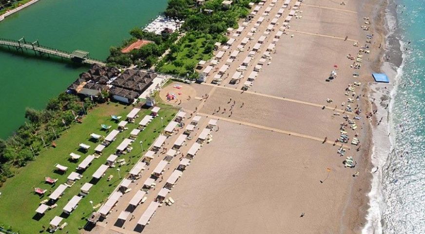 Собствен пясъчен плаж с малки камъчета. Дължината на плажа е 500 м. Шезлонги, чадъри, матраци, плажни кърпи са безплатни. Вход в морето - пясък, камъчета. Душ, кабини за смяна, спасител.