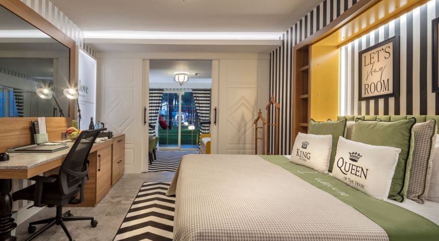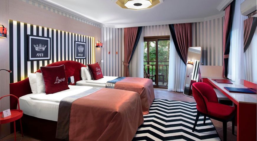 Стаите са оборудвани с: централна климатизация (в основната сграда), индивидуален климатик в бунгалата и градинската сграда, минибар (безалкохолни напитки и бира - безплатно, ежедневно попълване), сателитна телевизия с руски език канали, LCD екран, телефон с директно избиране, душ във всички стаи, сешоар, сейф (безплатно), балкон.
