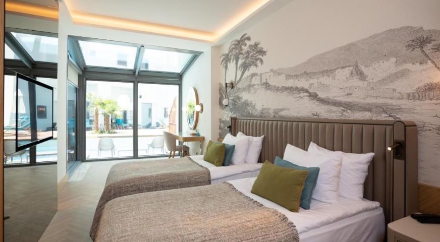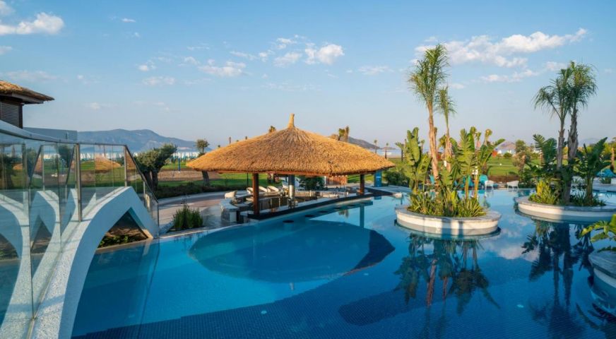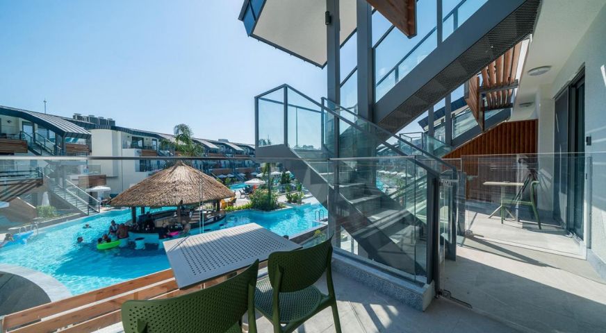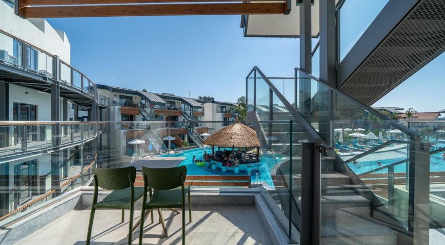 Хотелът разполага с общо 535 стаи, разпределени в 8 триетажни сгради: Standard room land view (30m ²) , Standard room sea view (30m ²), Standard room pool access via stairs (34m ²), Standard direct pool access (34m ²), Large room pool access via stairs (35m ²), Large room direct pool access (35m ²), Family room land view (43m ²), Family room sea view (43m ²), Family room pool access via stairs (43m ²), Family room direct pool access (43m ²), Swim up villa (154m ²).