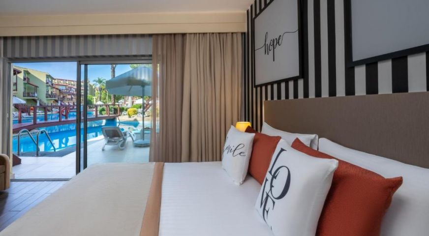Стаи Aqua Building: 105 Aqua Room (изглед градина или басейн, 27 м2), 17 Aqua Family Room (2 спални, изглед градина или басейн - 45 м2).