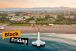 Собствен, пясъчно-чакълест с дължина 340 м. Чадъри, шезлонги и матраци на плажа и при басейна - безплатно.
