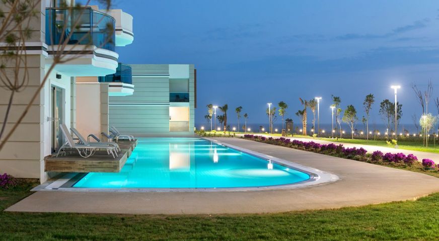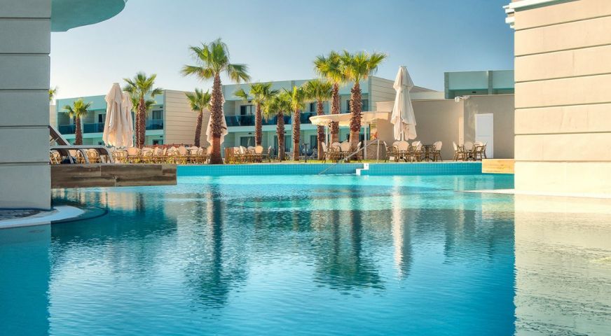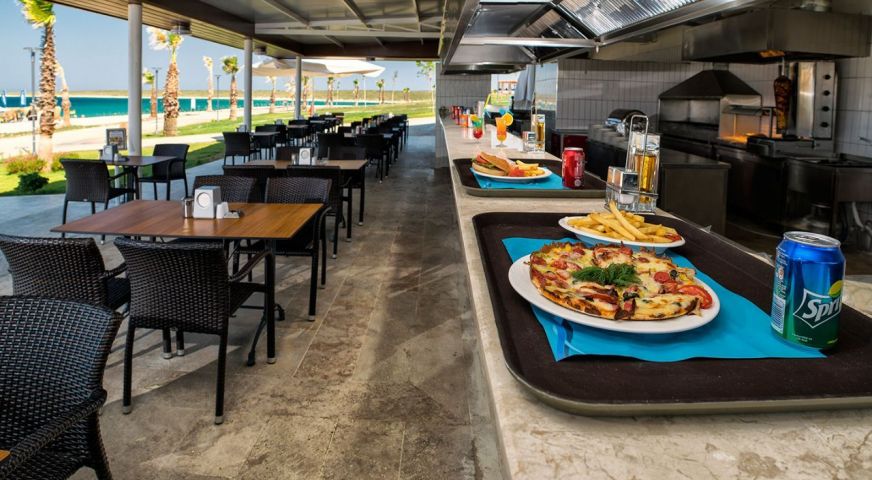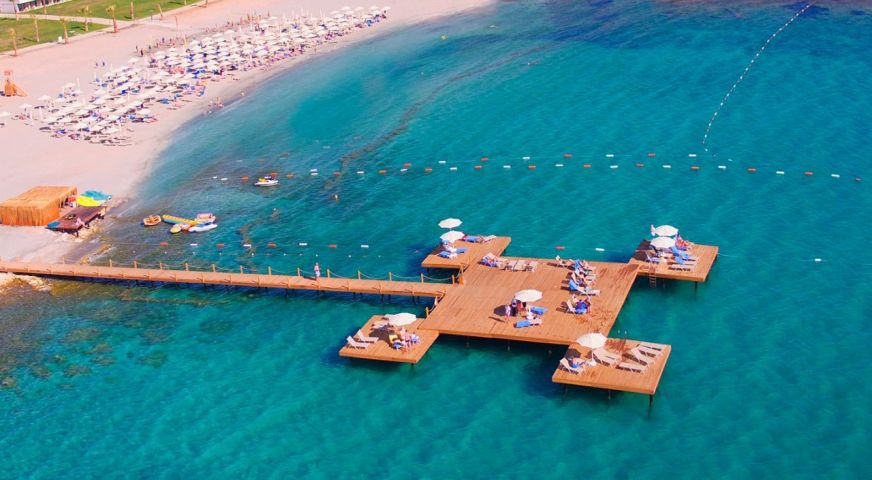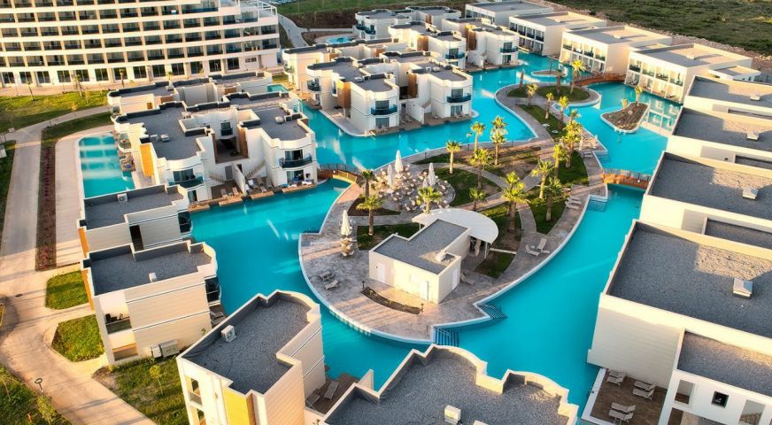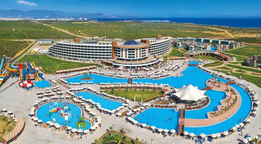 Оновен ресторант, 4 а- ла- карт ресторанта (с предварителна резервация), 5 бара, дискотека, 2 открити и 1 закрит басейн, аквапарк, водни пързалки, магазини, сладкарница, СПА център, паркинг. Заема площ от внушителните 200 000 кв. метра (200 дка). Разположен е на първа линия точно до широк пясъчен плаж. Отвори врати през май 2016 г. и от тогава се утвърждава на челна позиция сред най-луксозните комплекси в Егейска Турция. Предлага Ултра Ол Инклузив концепция на най-високо ниво като в асортимента на баровете са включени напитки като Ballantine’s, Absolute, Malibu, Havana Club и други. Разполага с огромна площ от 12 000 кв. метра с басейни (за деца и за възратни) и Аква Парк, което в това отношение го прави номер едно в Егейския регион. Хотелът разполага и със СПА център, който се простира на впечатляващите 2000 кв. метра, и Детски клуб с площ 500 кв. метра, в който има дори и кино салон. Плажът на хотела е с дължина 600 метра. Всеки турист остава впечатлен от мащаба и удобствата по територията му.