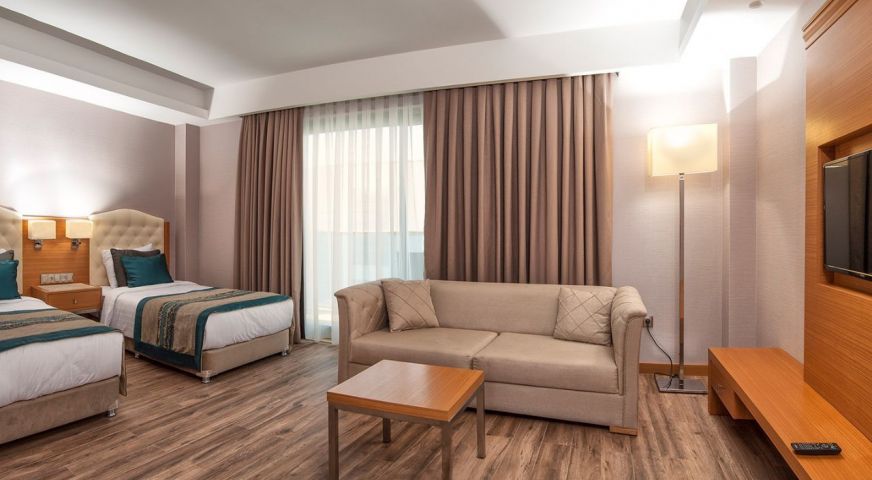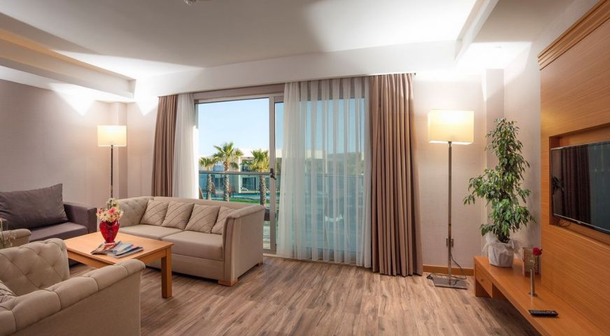 Хотелът разполага общо с 660 стаи. Всички стаи са оборудвани с климатик, телевизор, телефон, баня с душ/вана, сешоар, сет за чай/кафе, мини бар, сейф (безплатен), балкон, интернет. Всички стаи са оборудвани с климатик, 32-инчов телевизор със сателитна телевизия, телефон, баня, специализирана козметика за баня, сешоар, мини бар (безплатно ежедневно зареждане с вода и безалкохолни напитки), сейф (безплатен), сет за кафе и чай, безжичен интернет, балкон. Дизайнът на стаите е умело съчетание между съвременност и класика, а гледките, които се разкриват от тях към морето или комплекса, са прекрасни.