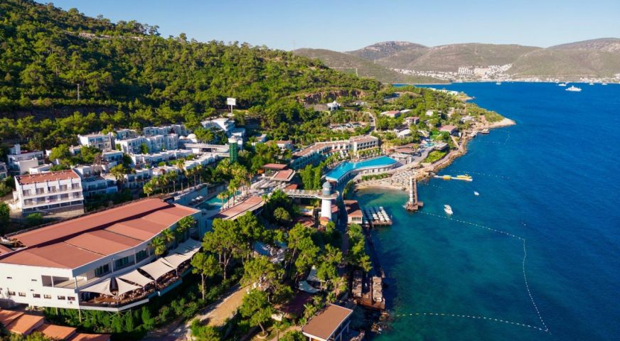 Хотелът се намира на 23 км от летище Милас и на 10 км от центъра на град Бодрум, разположен в района на Торба. Последно реновиран през 2024г.
