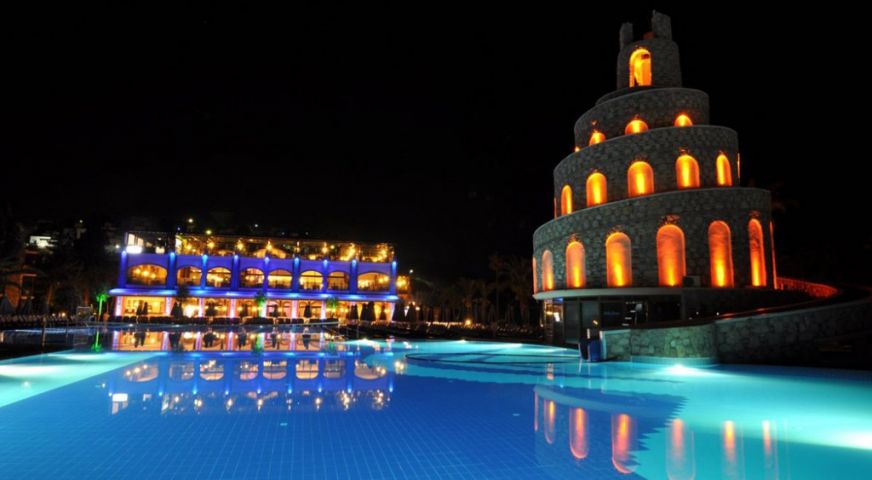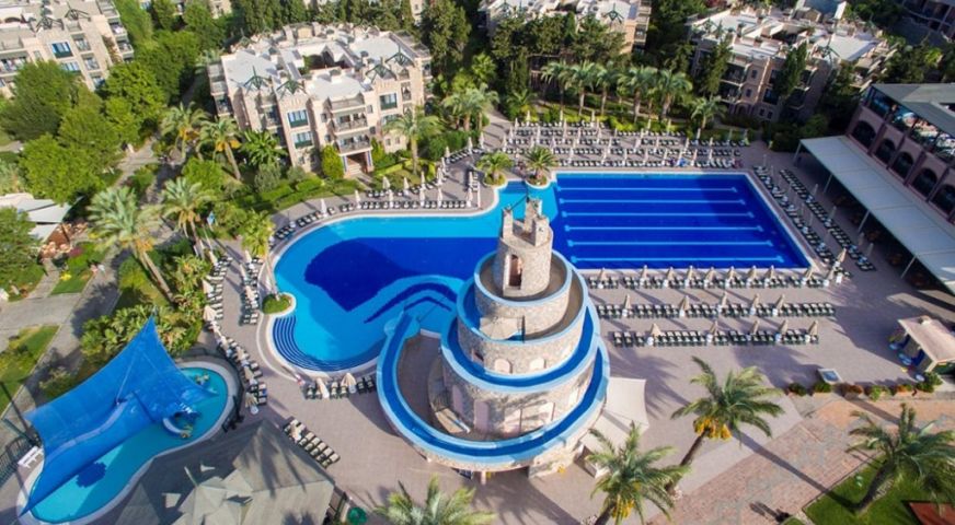 Хотелът разполага с основен ресторант, 3 а-ла-карт ресторанта - италиански, морски и турски (може да се ползва 1 път безплатно при престой от 7 нощувки), 3 бара, външен басейн, вътрешен басейн, водни пързалки, СПА център, паркинг, конферентни зали.
