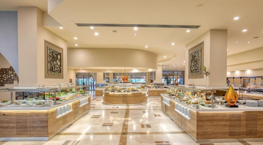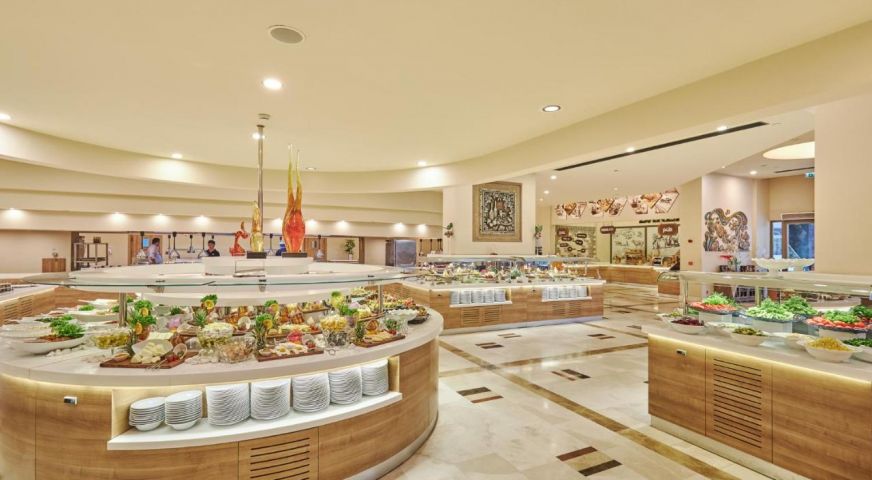 Основен ресторант PINA с диетичен, вегетариански и детски кът; 5 а-ла-карт ресторанта (турски MARDIN, гръцки MYLOS, средиземноморски VIRA, италиански PULCINELLA, тепаняки SAKURA - с предварителна резервация, Club Azure/ 4 снек ресторанта (Pina, Mylos, Vira, Sunrise); 12 бара (Sunset Lobby Bar, Sunris Bar, Vira Event Bar, Pool bar, Sisha Lounge, Mylos Bar, Sakura Bar, Pulcinella Bar, Club Azure/ Beach Bar, Disco Bar), Starbucks, сладкарница, 2 открити басейна, 1 закрит басейн, аква парк с 10 водни пързалки, амфитеатър, СПА център, дискотека, магазини, 9 конферентни зали, паркинг. На плажа има общо 16 кабани, които могат да се наемат срещу допълнително заплащане, с включен сервиз.