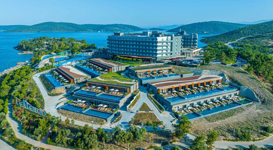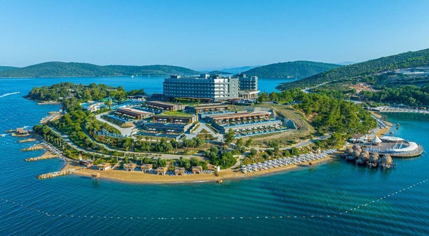 Намира се на 15 км. от летище Милас, на 26 км. от центъра на Бодрум, на 3 км от центъра на Гюверджинлик, на брега на морето. Построен през 2014г., на обща площ от 82 000 m². Реновиран през 2023/2024г. - ресторантите, общите части и подобрена Ultra All Inclusive концепция.