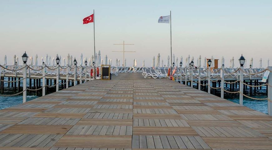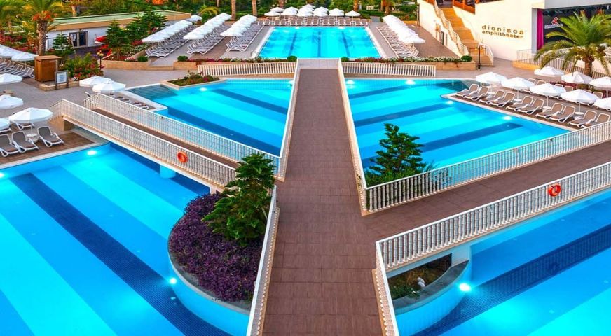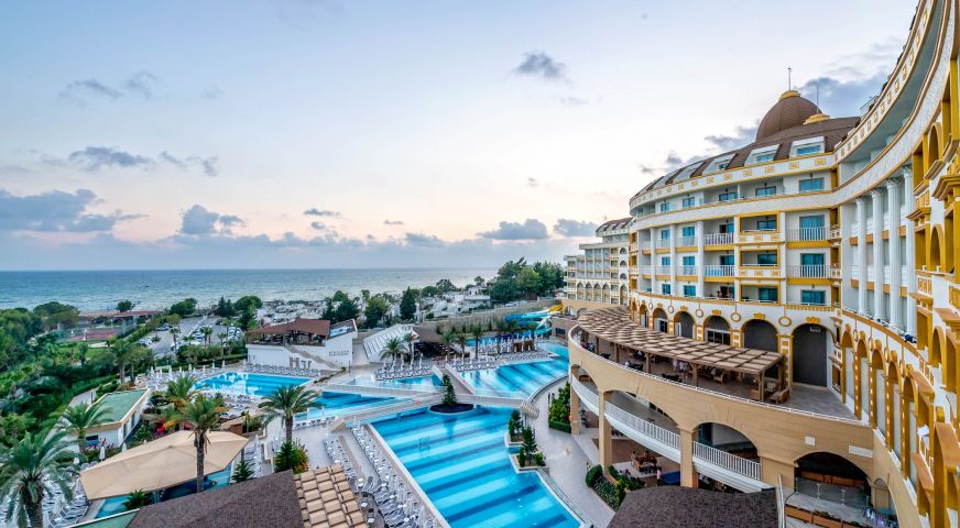 Хотелът се намира в Кумкьой, на 8 км от град Сиде, на 100 метра от морето. Състои се от една 10-етажна сграда.