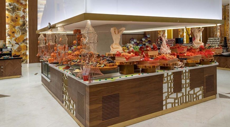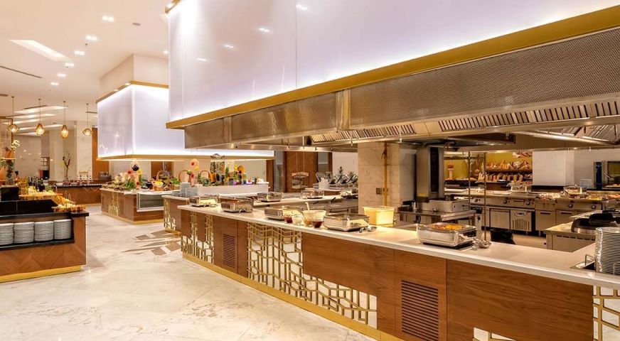 Работно време на основния ресторант: Закуска от 07:00-10:00, късна закуска от 10:00-10:30, обяд от 12:30-14:30, вечеря от 19:00-21:00, нощни закуски от 21:30-02:00ч., континентална закуска от 02:00-06:00ч.