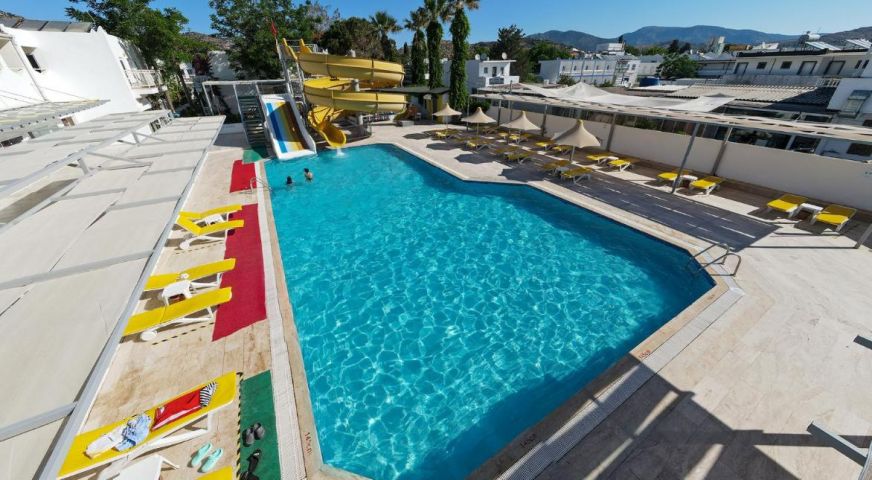 Намира се на 47 км от летище Милас, на 11 км от центъра на Бодрум, на брега на морето. Построен 1990г., на обща площ от 17 000 м². Реновиран през 2024г. (стаи, лоби зона и рецепция, основен ресторант, снек бар, зона около басейна).