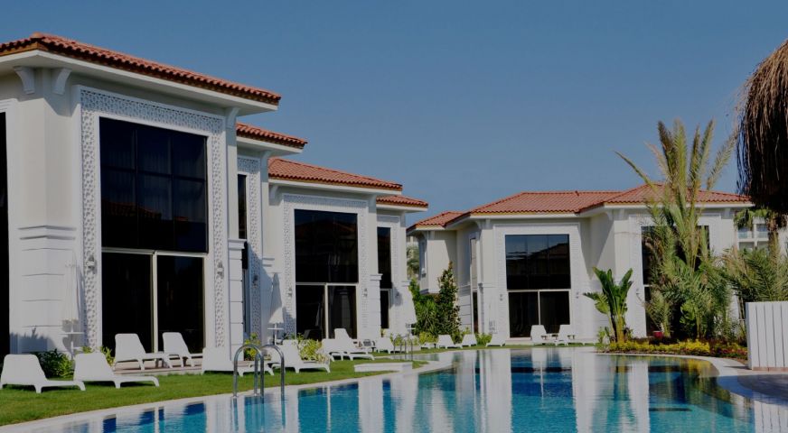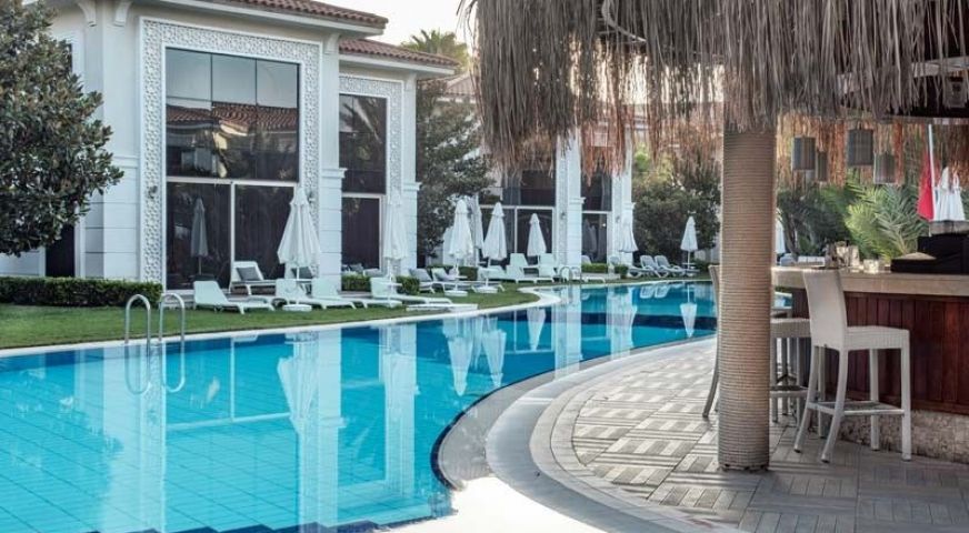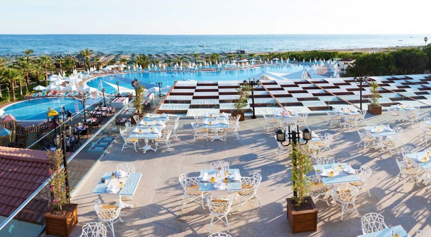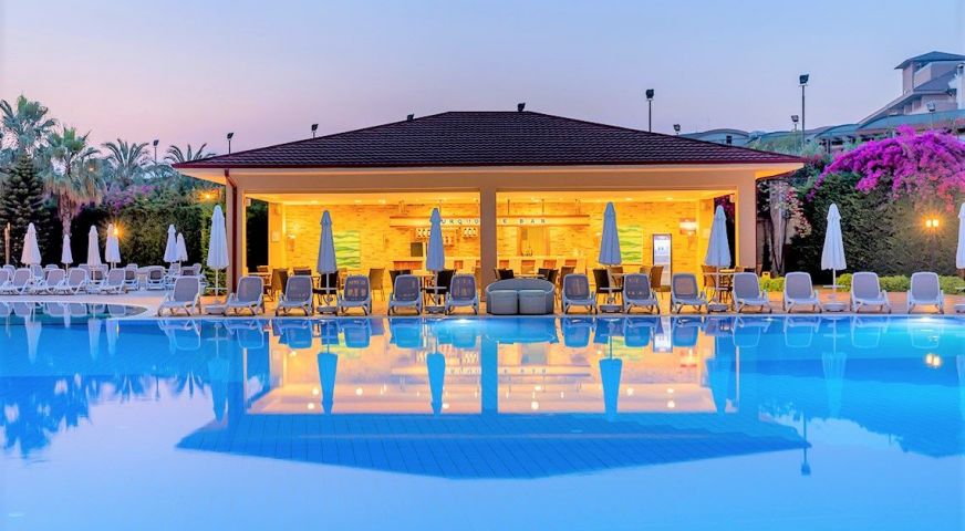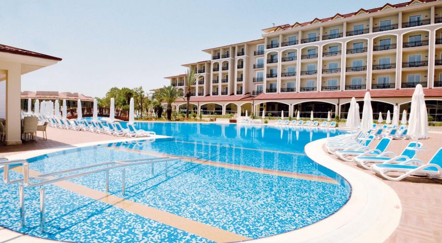 Хотелът се намира на брега на морето, в село Кумкьой, на 5 км от Сиде. Състои се от една основна 5-етажна сграда, една 4-етажна пристройка, девет 2- и 3-етажни бунгала и комплекс от 2-етажни вили. КОНЦЕПЦИЯ "ЛЯТО 2022"