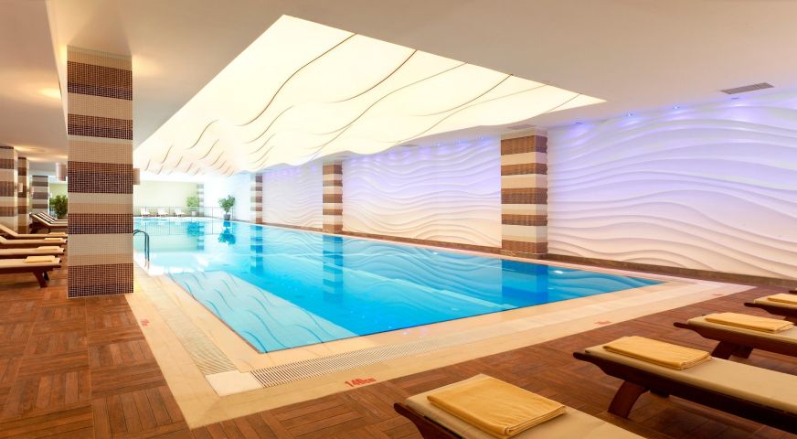 1 закрит басейн с прясна вода (отопляем от ноември до април), площ 245 кв.м.