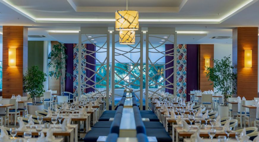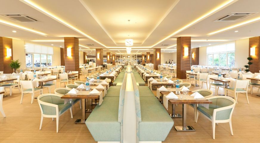 Работно време на основния ресторант: Закуска 07:00-10:00, късна закуска 10:00-11:00, обяд 12:30-14:30, вечеря 19:00-21:30, нощни закуски 23:00- 06:00 часа. Бюфет.