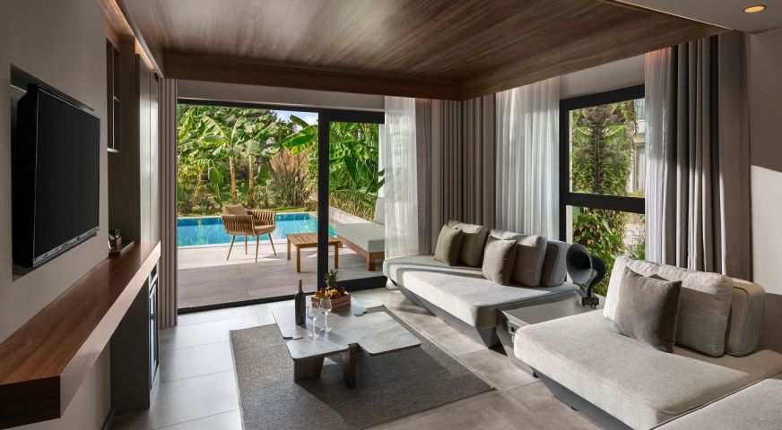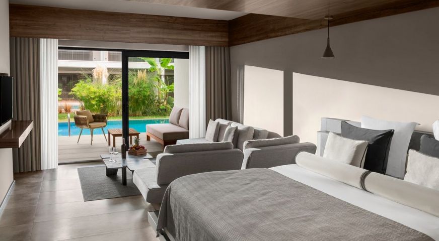 Коментари: В хола има 2 дивана. 1 баня. Family suite Swim-Up и Family Suite Land View Terrace се намират само на първи етаж.