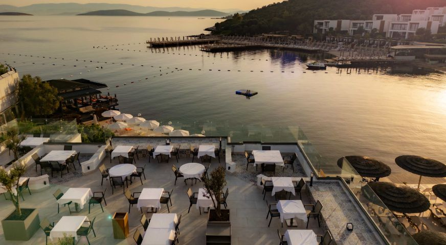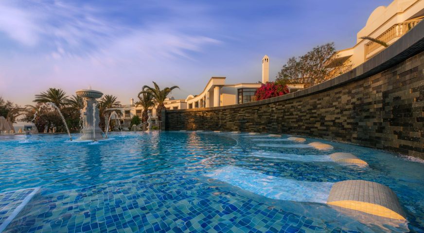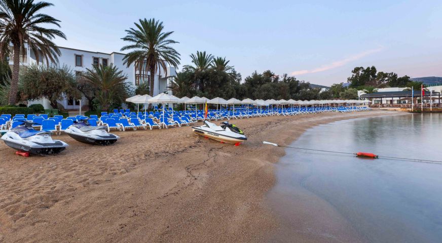 Хотелът се намира на 30 км от летище Милас, на 9 км от центъра на Бодрум, в района на Торба, на брега на морето. Последно реновиран през 2022/3 г. С обща площ от 70 000 m².