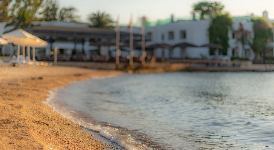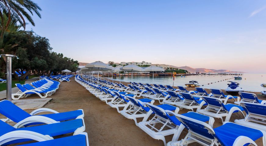 Собствен пясъчен плаж с дължина от 150 м и 150 м платформа - чадъри, шезлонги и кърпи на плажа и при басейна - безплатно.