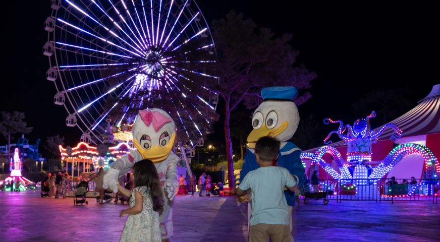 CANDYTOWN LUNA PARK е мястото за неверятно забавления по време на Вашия престой. Паркът представлява комплекс от различни забавления за всички възрасти. Малките гости могат да се забавляват в детското градче - миниатюра Portaventura Kids World (шопинг мол, пожарна, поликлиника, полиция, банка, театър, лего стая, фитнес и много други детски обществени сгради), с площ 5000 кв. м. Там могат да участват в различни групи за занимания и да получат сертификат. Разбира се, не трябва да пропускат и Лунапарка с 9 различни атракции включително виенско колело високо 17 метра, както и детска въртележка, картинг, лабиринт с лазер игри, детско влакче на ужасите и 8D кино. Има мини клуб за деца между 4 и 7 годишна възраст, който може да предложи на малките посетители детски фитнес, арт занимания, мини диско, игрална площадка, детска йога и безброй други забавления. За малко по-големите (на възраст между 8 и 12 години) в макси клуб се предлага търсене на съкровища, оригами, баскетбол, волейбол, водно поло, сумо игри, рали, футбол и още други. Тийнейджърите в хотела могат да посетят предвидения за тях клуб, в който играят тенис на маса, футбол, дартс, търсене на съкровища, игрална зала (playstation 5 и компютърни игри), бинго, баскетбол, кино, уроци и много други. Дино парк с 12 динозаври в реални размери. Най-новите атракциони са тематичния парк Candyland и виенското колело. Работно време в периода 01.05-15.10 от 20.00 до 23:00 (може да варират спрямо метеорологичните условия).