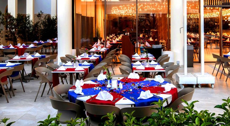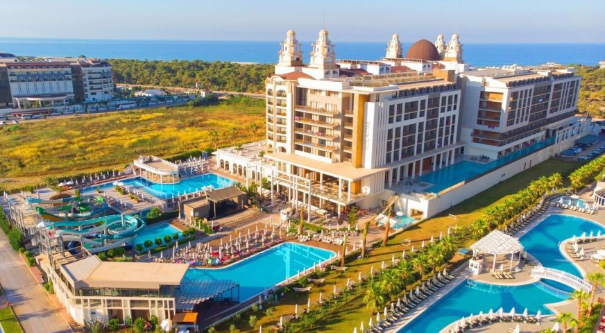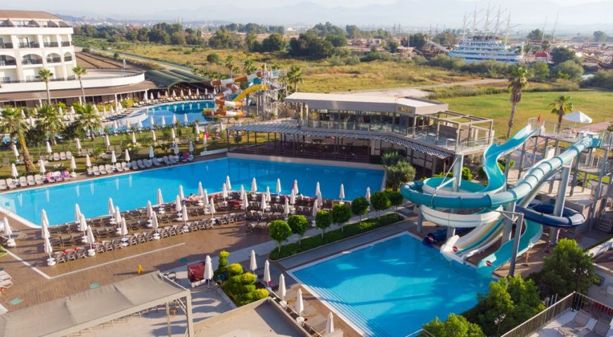 Основен ресторант, 3 а-ла-карт ресторант с международна кухня, турска кухня, италиански ресторант (с резервация), лоби бар, бар край басейна, бар на плажа, дискотека, сладкарница, басейн с водни пързалки, детски басейн, тенис на маса, плажен волейбол, шах, мини футбол, дартс, фитнес център, аниматорски програми, билярд, водни спортове, дискотека, мини клуб, зала за игри, сауна, хамам, парна баня, безжичен интернет, СПА център, масажи, пилинг, салон за красота, пране, рент-а-кар, лекар.