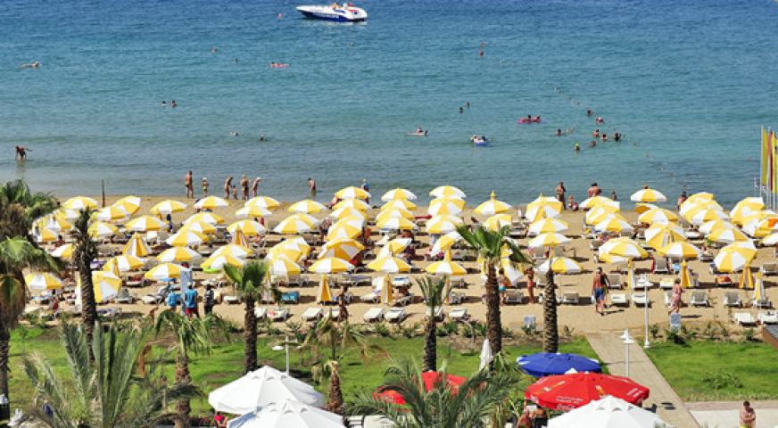Хотела разполага със собствен плаж, пчсъчно-чакълест и бар на плажа - безплатно.На басейна и на плажа: чадъри, шезлонги, матраци – безплатно. Плажни кърпи: срещу депозит.